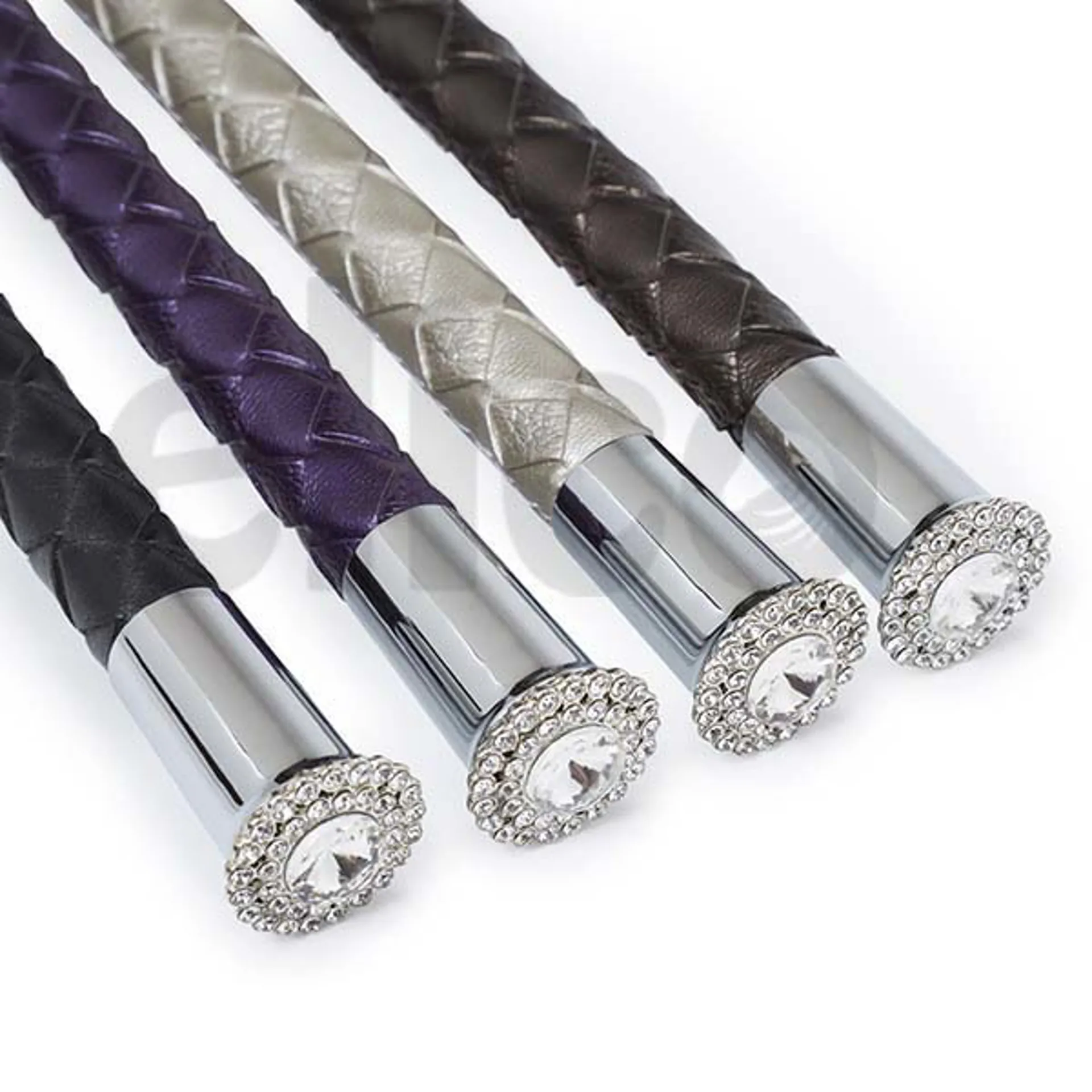 Attractive dressage whips with crystal stone on the end of the handle