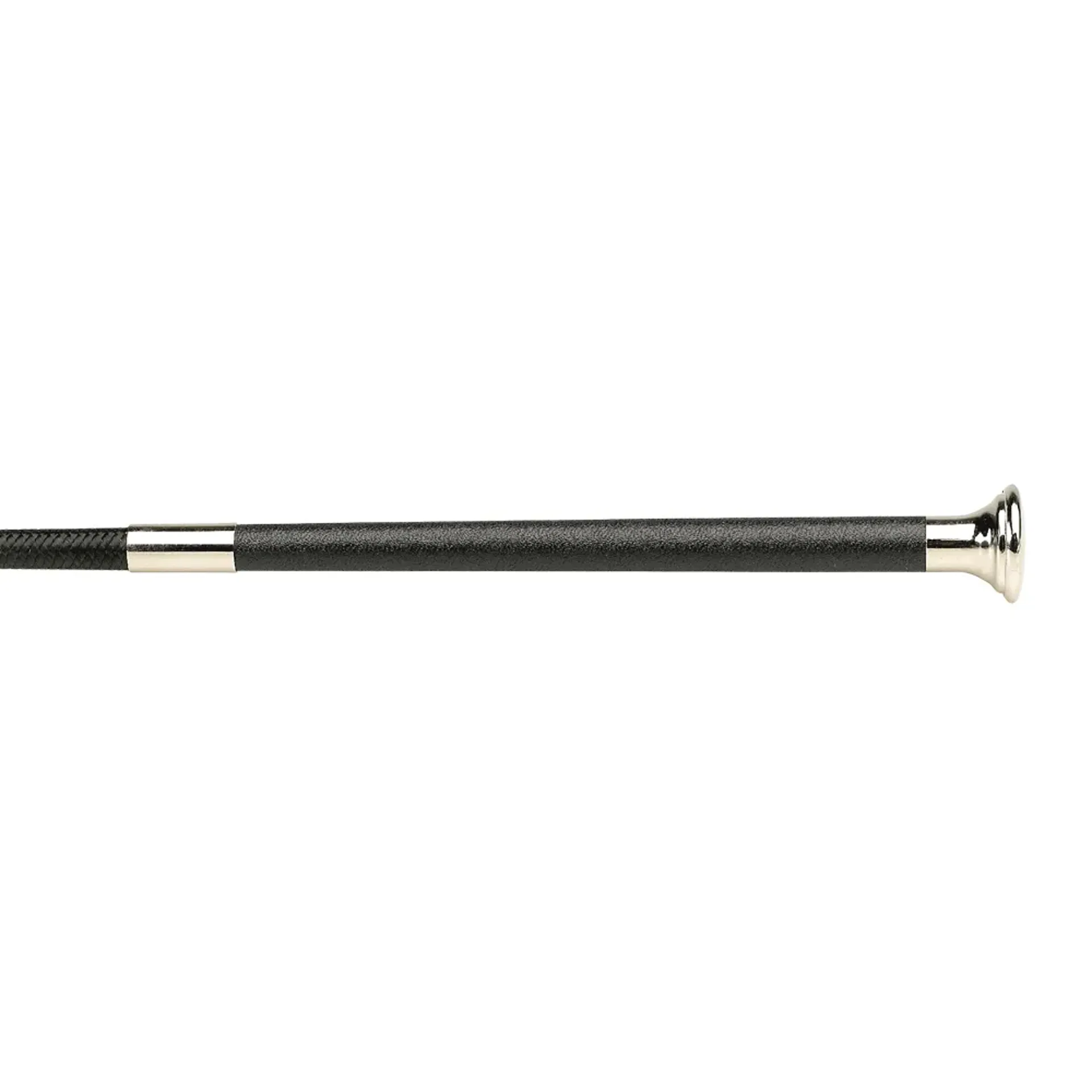 Black braiding with matching black leather handle and silver accessories featuring a mushroom shaped cap