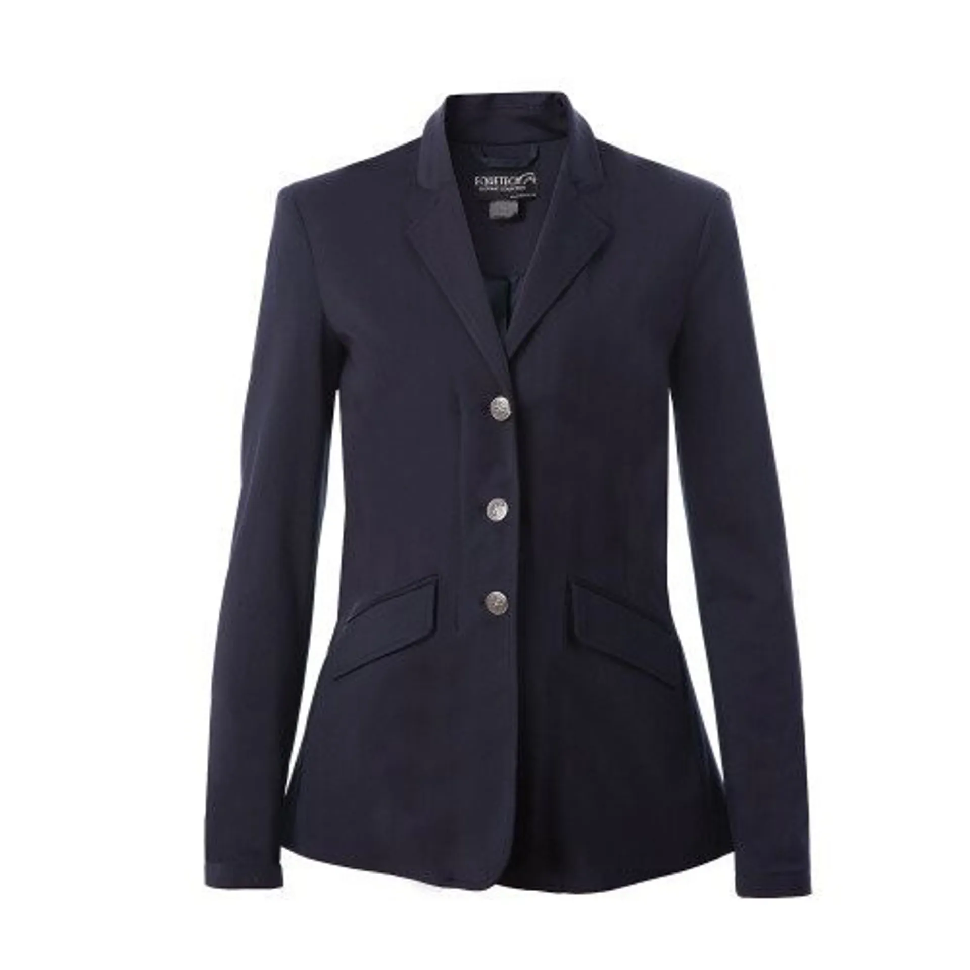 Classical tailored competition jacket with modern elements. Made from durable stretch fabric with 5% Lycra added stretch and shape retention. Other features include Equetech exclusive crystal button, double back vents, darted contoured sleeves and concealed zip pockets. Machine washable. 95% Polyester / 5% Spandex.