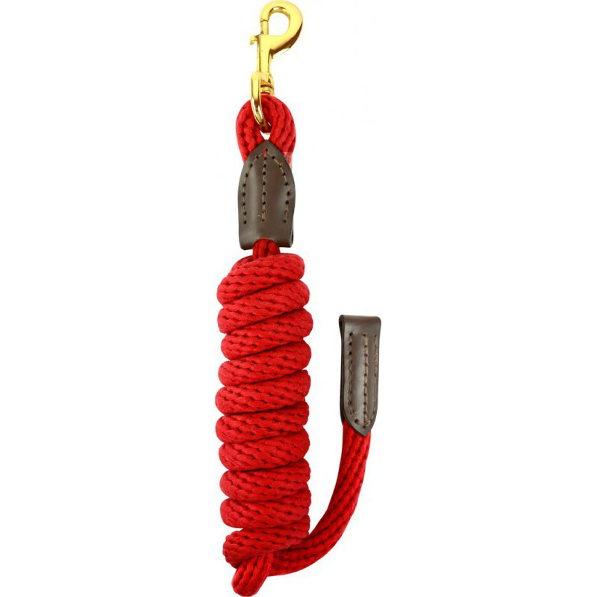 Polyester tie rope is reinforced with buffalo leather on both ends. Brass plated zinc swivel snap.