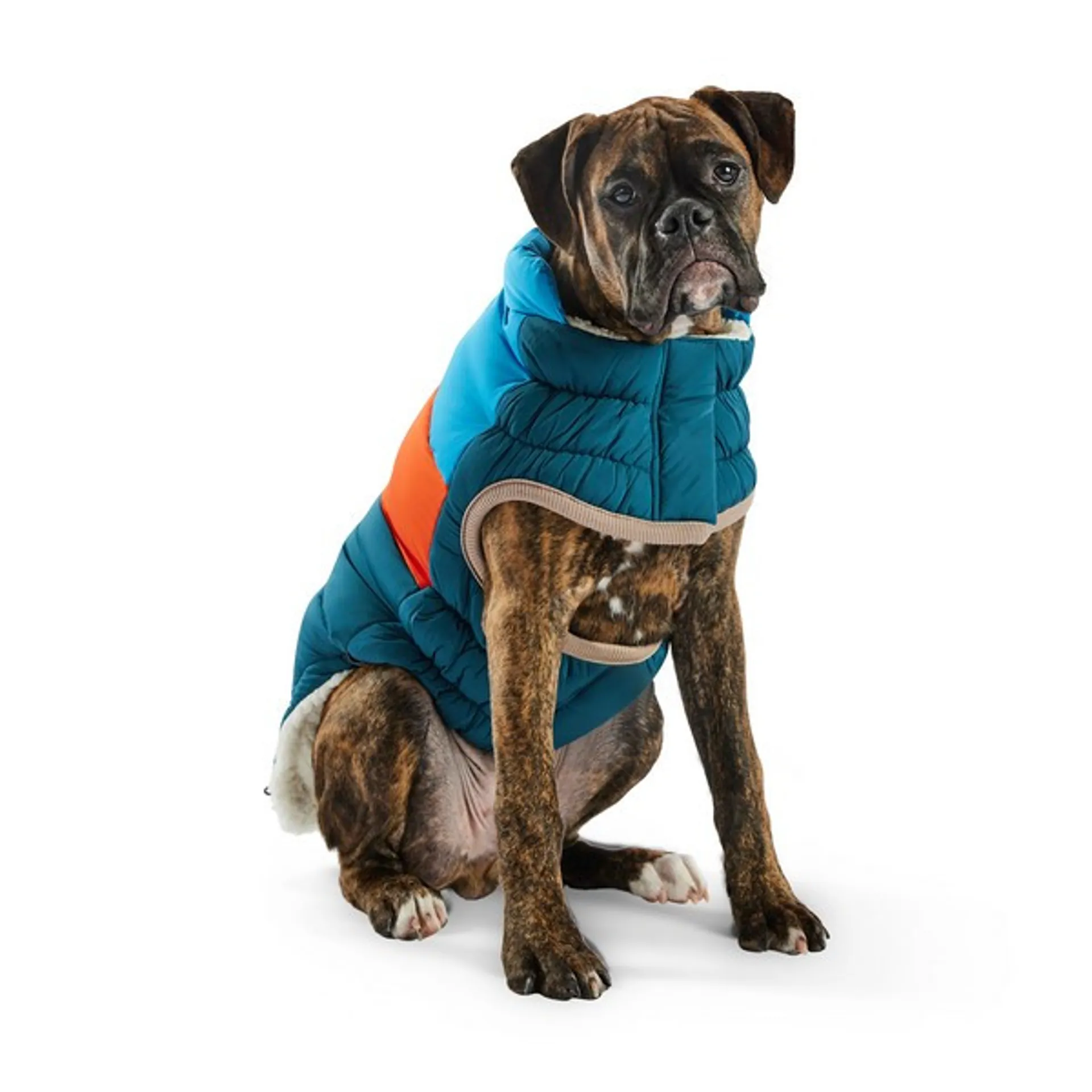 The GF PET® Elasto-Fit® Color Block Puffer is a great choice for active dogs who are looking for the coolest puffy fashion and warm coverage.