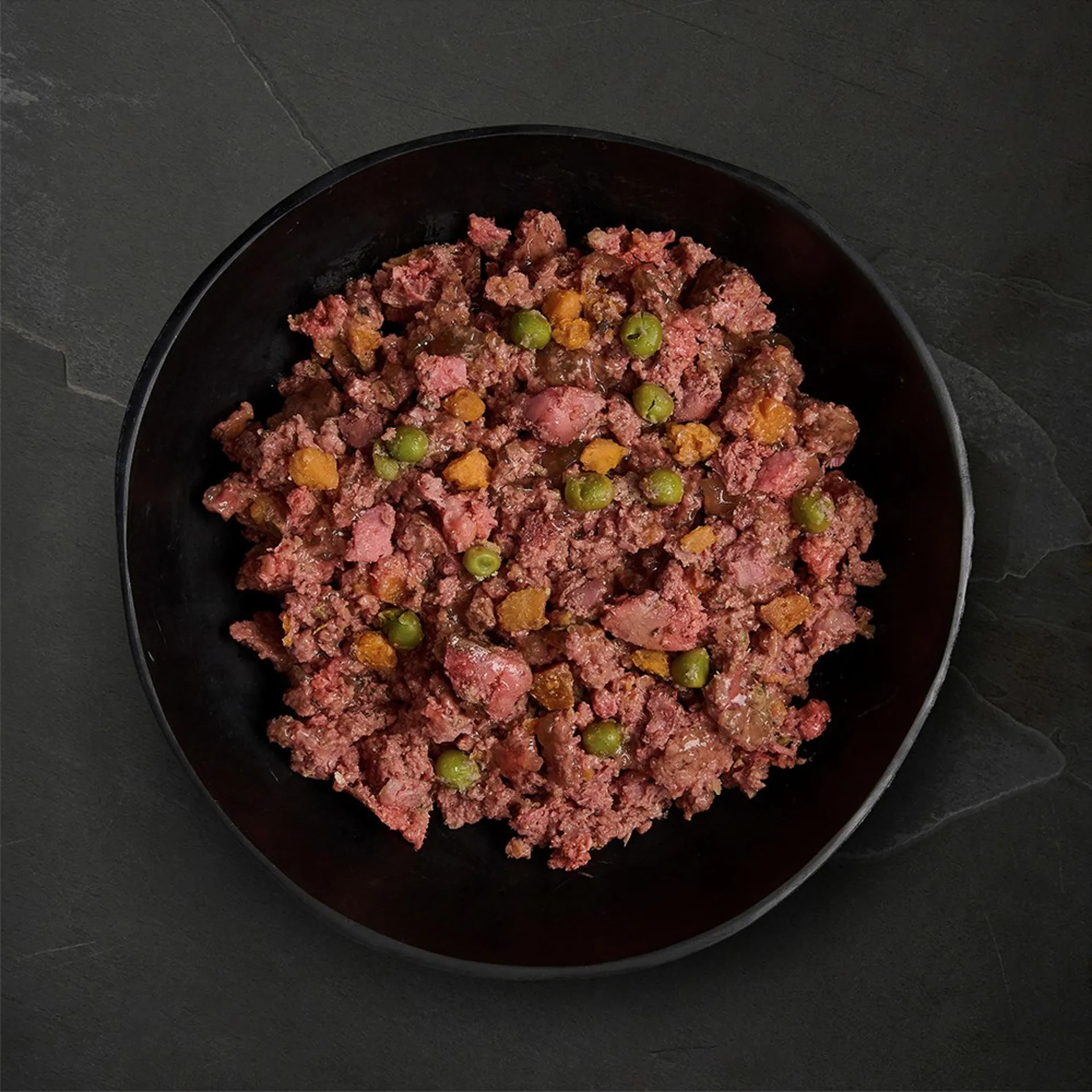 Freshly Prepared Turkey (40%), Freshly Prepared Duck (25%), Sweet Potato, Carrots, Peas, Broccoli, Minerals, Green Lipped Mussel*, Salmon Oil, Apple, Spinach, Seaweed, Parsley, Yucca, Rosehips, Nettle, Marigold, Slippery Elm, Aniseed, Peppermint, Rosemary. *Source of Glucosamine (100 mg/kg).