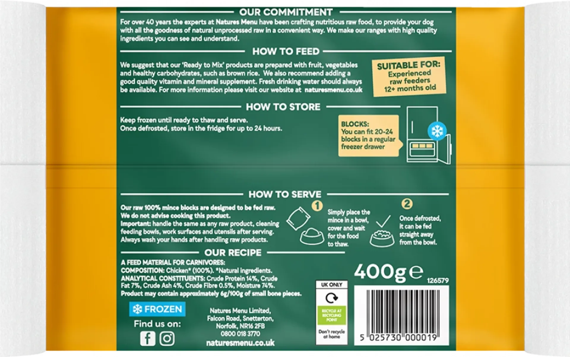 Question(s) asked regarding Natures Menu Frozen Mince Blocks Chicken