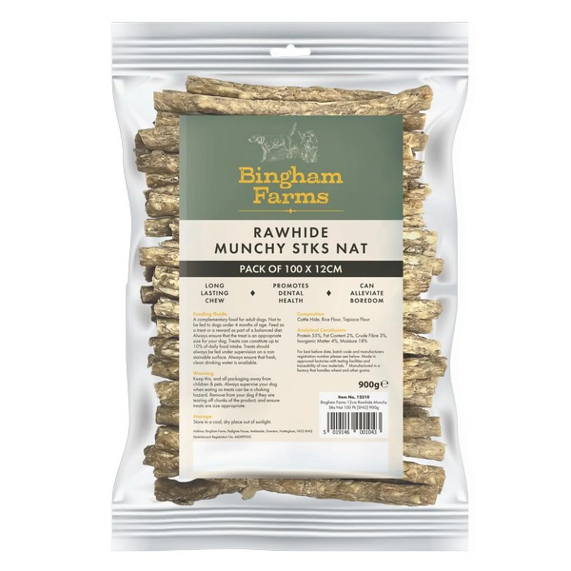 Question(s) asked regarding Bingham Farms 12cm Rawhide Munchy Sticks Nat 100 Pk