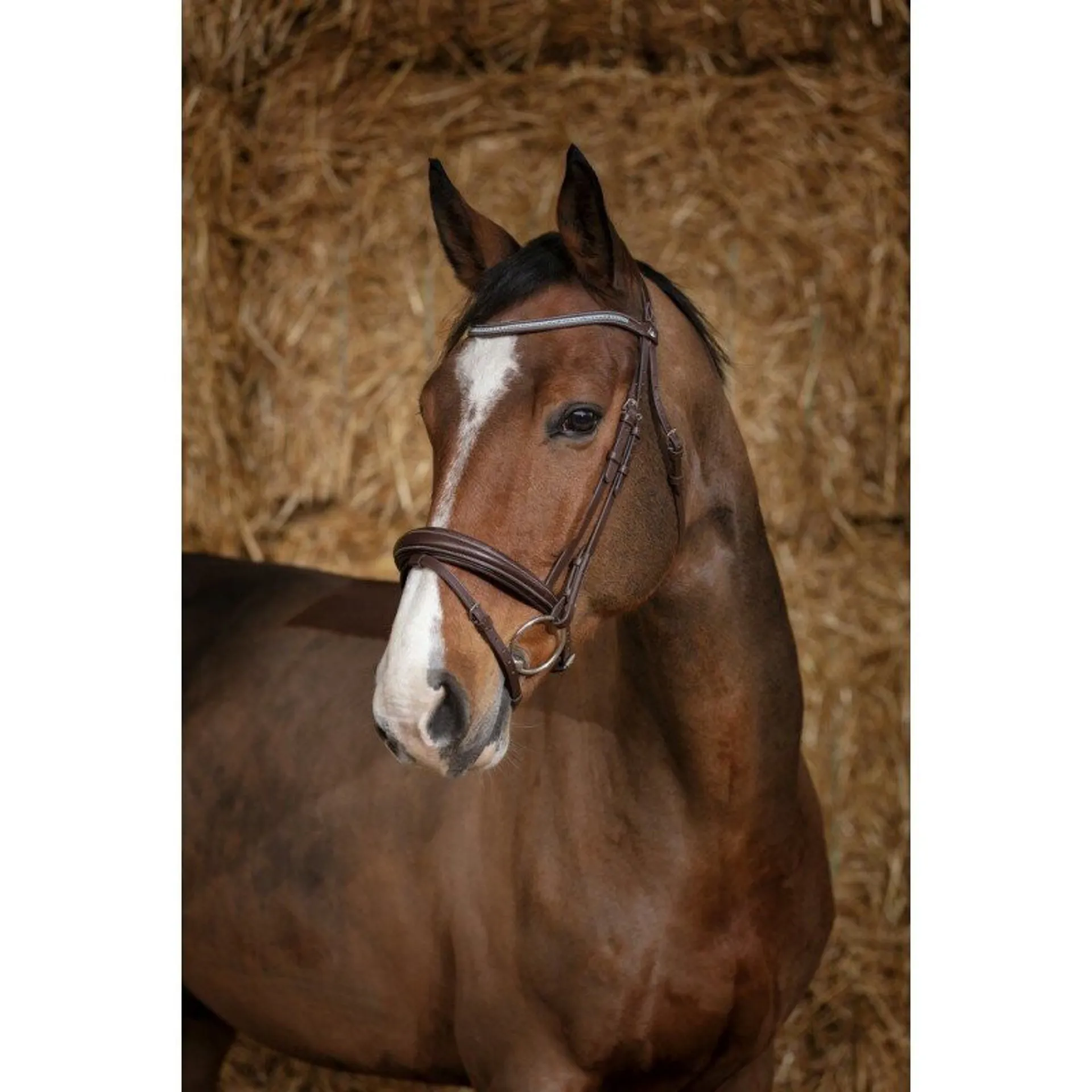 strass. Black stitching for the black leather and white stitching for the havana leather, and hooks on the bit straps. Stainless steel buckles. Sold without reins.