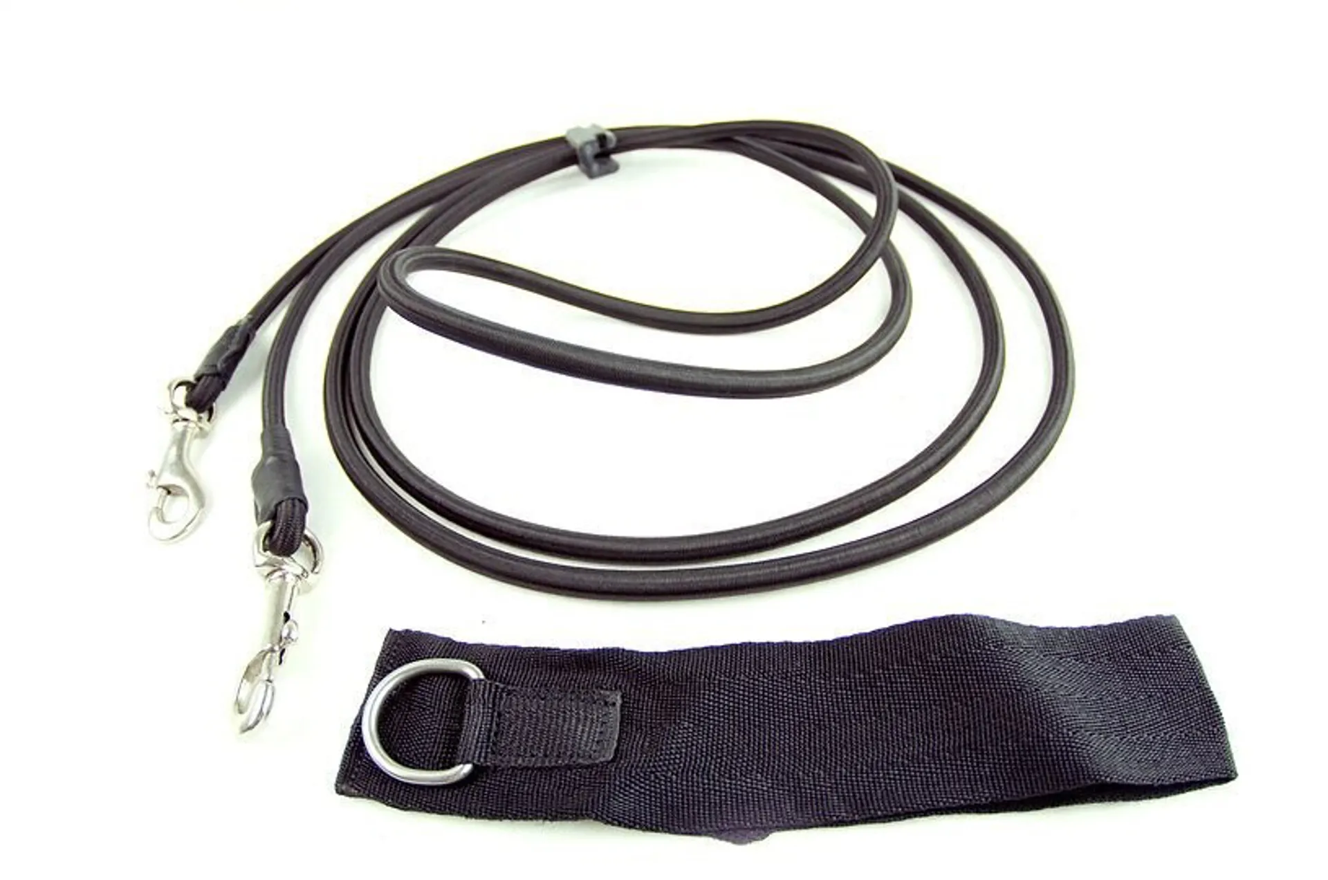 The Ascot Training Reins have the added advantage of a girth tab with D ring attachment, which can be slipped over the girth. They are suitable for use training young horses as well as more experienced horses. The reins encourage the horse to lower their neck and use their back muscles correctly. Can be used when riding or lunging.